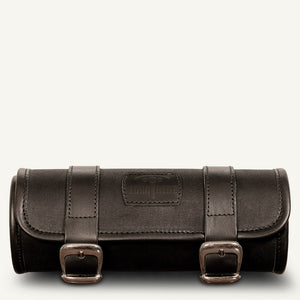 This motorcycle fork bag comes with two full-grain leather mounting straps.