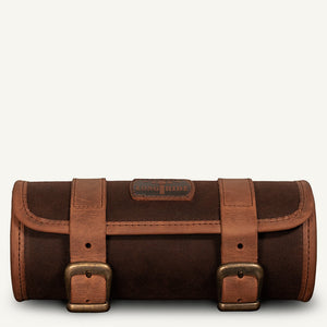 Add style to your handlebar with this 22oz brown waxed-cotton, and vegetable-tanned leather fork bag.