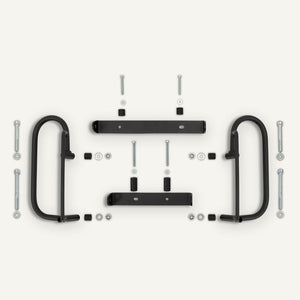 Crafted from durable, galvanized steel to resist oxidation, our saddlebag holders are designed specifically for the BMW R NineT. Their minimalist black finish ensures they blend seamlessly with your bike’s design.