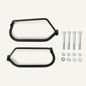 • Sold as a Pair (left and right side), upgrade your Indian Chief with our custom-designed black saddlebag holders. Forged from durable steel, they will accentuate the commanding presence of your Chief. Installation is a breeze and doesn't require any modifications to your bike.
