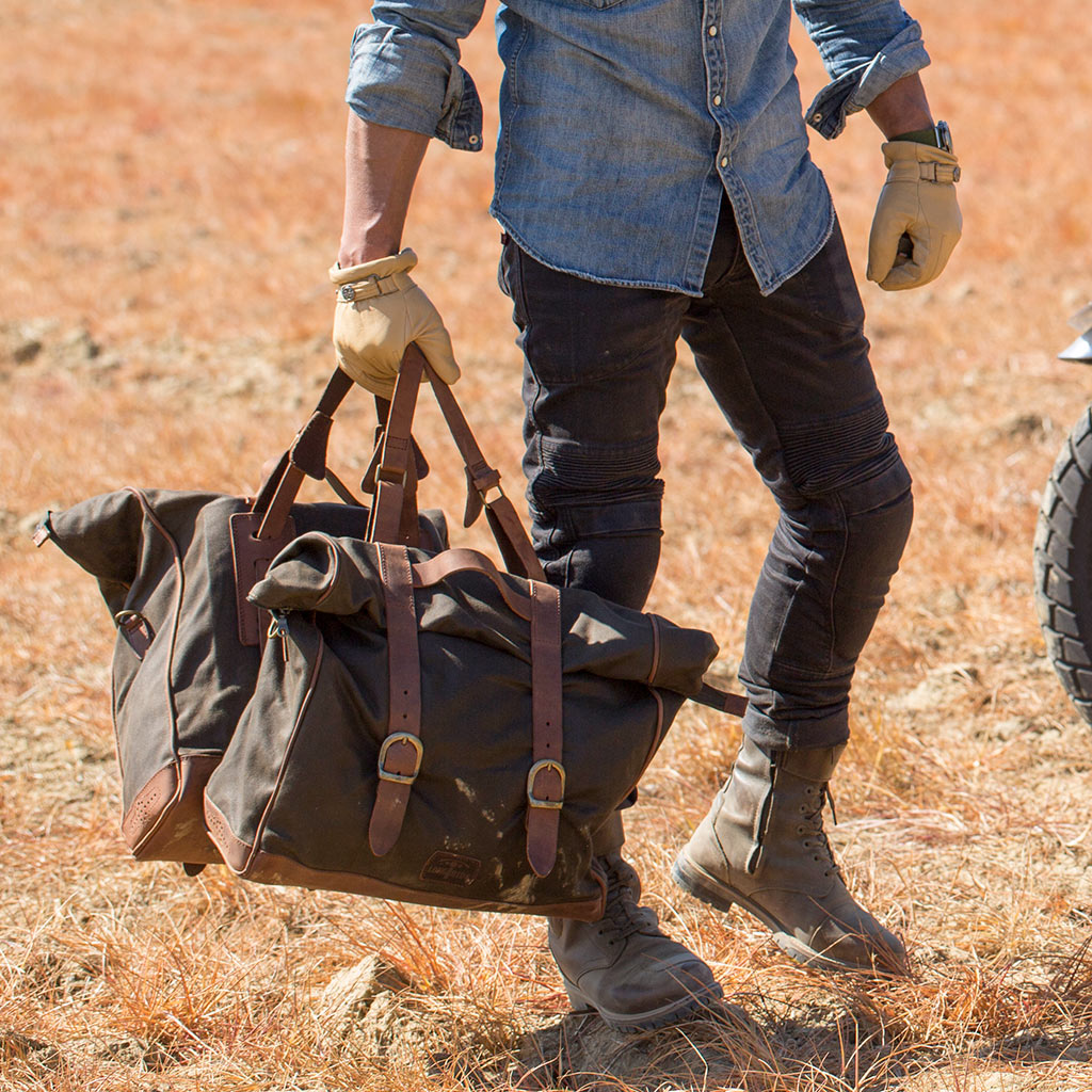 Connect your saddlebags together and throw them onto, or below your seat like a cowboy on his horse.