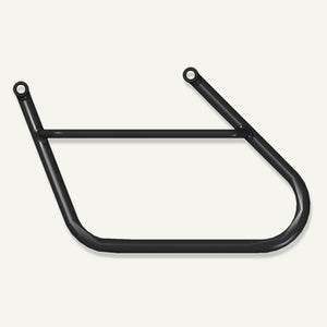 Pair of black steel saddlebag holders custom-made for the Royal Enfield Meteor 350 (click here for the Super Meteor). Handmade in our workshop with strong steel, they look great and authentic even with no saddlebag on.