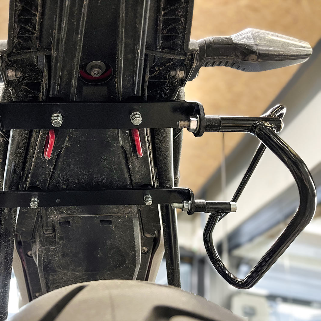 Crafted from durable, galvanized steel to resist oxidation, our saddlebag holders are designed specifically for the BMW R NineT. Their minimalist black finish ensures they blend seamlessly with your bike’s design.