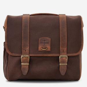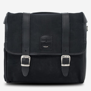 Made from heavy duty 22oz waxed canvas and authentic full-grain leather, the Racer Saddlebag is water repellent, and will age beautifully. This saddlebag features a rigid back and base allowing it to retain its shape forever.